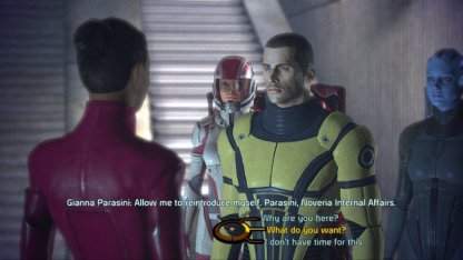 När du startar spelet får du antingen välja att spela som den commander Shepard vi har sett i de antal trailers som visats i förväg eller så skapar du din egen karaktär. För mig var det en självklarhet att skapa min egen commander för han ska ju trots allt hänga med i ett antal timmar framöver. Så när jag väl fått mitt obligatoriska skägg och min breda hals på plats var det dags att kasta sig in i spelet. Det är betydligt lättare att göra snygga karaktärer i Mass Effect än vad det är i Elders Scroll: Oblivion där de såg komplett galna ut om man bara förde ett reglage för långt. Därmed inte sagt att det är en perfekt karaktärsskapare men fullt godkänd med bred marginal.